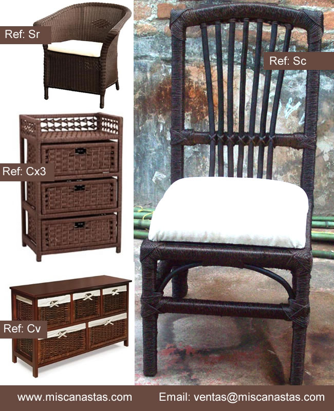 | | | | Fabricante de Sillas en Mimbre y Mobiliario Colombia: Ofrecemos el mas completo catalogo de muebles en mimbre, fabricamos sobre medidas en los colores que el cliente requiera, Mobiliario para niñas, muebles para fincas, roperos en mimbre para niños. Pedidos e informes al email: ventas@miscanastas.com | | | A continuación presentamos imágenes de nuestro producto en taller listo para ser entregado, fabricamos sillas con base en aluminio, y en barras de hierro. Tejidas en mimbre y pintadas en el color que el cliente desee. |